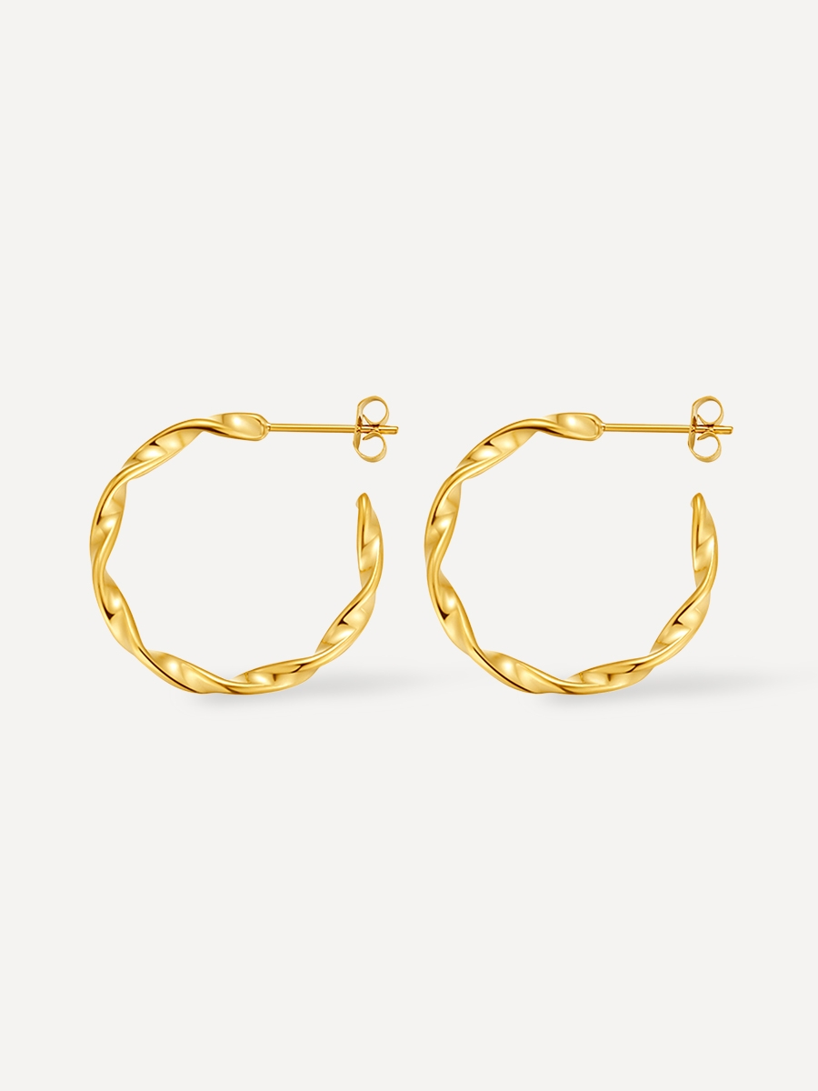 Let’s Twist again! Bringe den Trend der Saison in deine Schmuckbox mit unseren “Twisted Hoop” Ohrringen. Diese ultramodernen Creolen sind wegen ihres angesagten, gedrehten Designs ein perfekter Eyecatcher. Darüber hinaus sind sie aus hochwertigem Edelstahl gefertigt, weshalb sie nicht nur sehr widerstandsfähig sind, sondern außerdem angenehm leicht. Zudem sind die gedrehten Creolen echte Alleskönner, die jedes Outfit veredeln. Die “Twisted Hoop” Creolen sind darüber hinaus in drei Ausführungen erhältlich: Silber, Roségold vergoldet und 18 K Gold vergoldet.