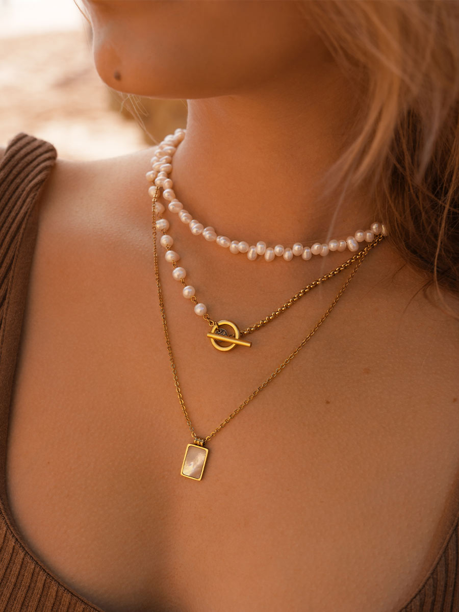 Traumhaft schöne Kette mit einem rechteckigen Perlmutt-Anhänger
