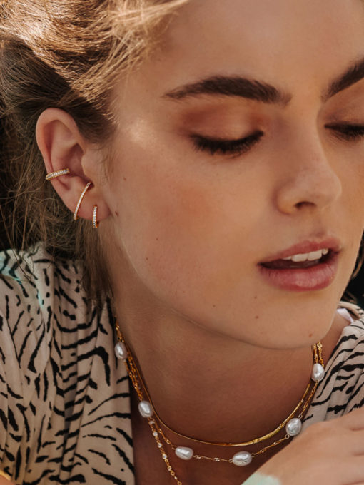 Get ready for something extraordinary! Unsere „GODDESS BOW„ Ohrringe sind wahre Hingucker. Ihre lange runde, aber trotzdem schmale Form lässt sie dein Ohr umschmeicheln und einen ganz neuen Ohrringlook erschaffen. Besetzt mit feinen Zirkoniasteinen sind die „GODDESS BOW„ Ohrringe nicht nur elegant, sondern funkeln auch unwiderstehlich. Trage die „GODDESS BOW„ Ohrringe alleine oder in Kombination mit anderen Ohrringen und kreiere deinen ganz eigenen Look. Die „GODDESS BOW„ Ohrringe sind aus hochwertigem 925er Sterlingsilber gefertigt, was sie zu langlebigen und edlen Begleitern für besondere Anlässe aber auch alltägliche Unternehmungen macht. Sie sind in zwei verschiedenen Ausführungen erhältlich: 18K Gelbgold vergoldet und Silber.