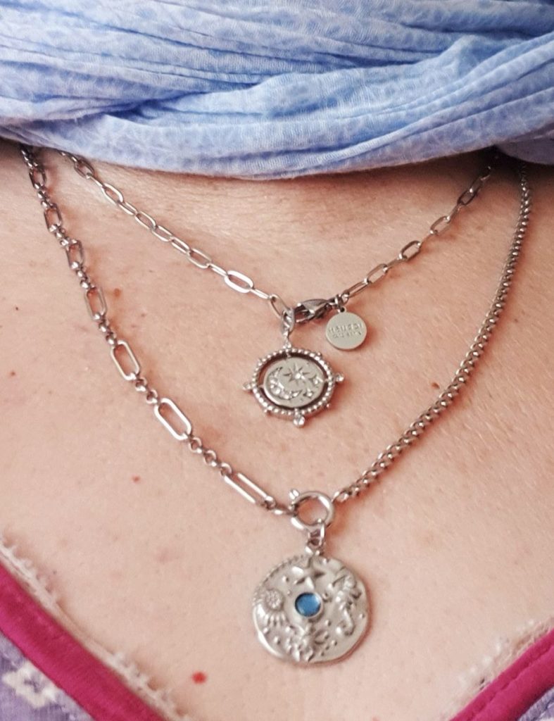 Wunderschöner, detailreicher Anhänger, interessante Kette, in verschiedenen Variationen tragbar.