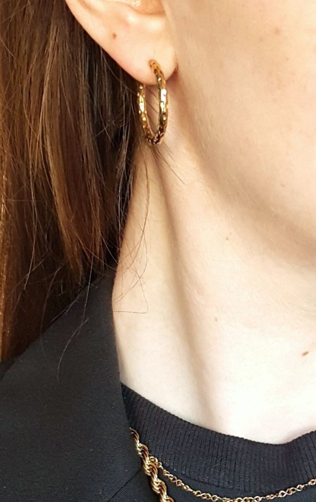 Unsere „Textured“ Creolen laden zum Träumen ein! Die runden Creolen zeichnen sich durch ihre besondere Oberflächenstruktur aus, die an eine Mondlandschaft erinnert. Die mittelen Creolen sind aus hochwertigem Edelstahl gefertigt, was diese Ohrringe zu einem langlebigen Begleiter für den Alltag macht. Weil Creolen ein zeitloser Klassiker unter den Ohrringen sind, ergänzen sie jeden Look perfekt. Außerdem sind die „Textured“ Creolen echte It-Pieces und lassen sich auch wunderbar mit anderen Ohrringen kombinieren. Die Creolen sind in zwei unterschiedlichen Ausführungen erhältlich: 18 K Gelbgold vergoldet und Silber.
