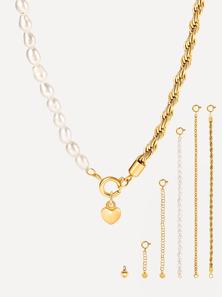 Hier ist unsere neueste Schmuckkollektion, perfekt für moderne Frauen, die Vielseitigkeit und Stil lieben! Unser Multi-Ketten-Set ermöglicht es Ihnen, verschiedene Ketten auf vielfältige Weise zu kombinieren und einzigartige und auffällige Looks zu kreieren. Tragen Sie alle Ketten zusammen für einen mutigen Statement-Look oder mixen Sie und passen Sie sie an Ihre Stimmung und Outfit an. Die Möglichkeiten sind endlos! Jede Kette ist aus hochwertigen Materialien und Expertenhandwerk gefertigt und garantiert Haltbarkeit und lang anhaltende Schönheit. Mit unserem vielseitigen Multi-Ketten-Set können Sie Ihre Accessoire-Game auf ein neues Level bringen!